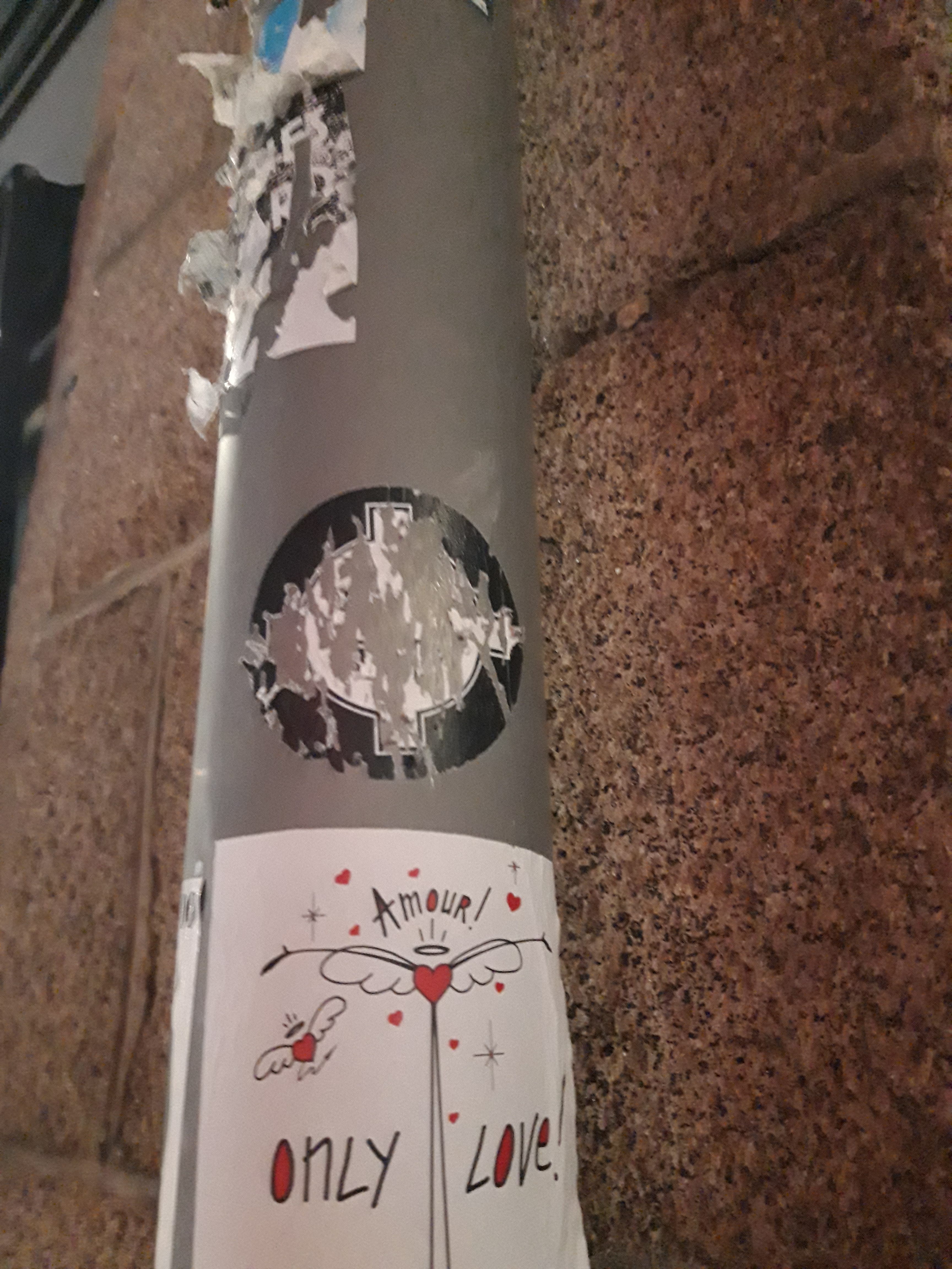 Depuis quelques jours, je nettoie la ville de stickers du groupe d'extrême droite Némésis. A rejoint dans cette veille un visuel inquiétant, pas assimilé à un groupe en particulier mais dont le graphisme laisse à penser des accointances avec le GUD (ils étaient pour certains sur des stickers antifascistes). Si on se demande si c’est une croix celtique, c’est une croix celtique, c’est aussi simple que ça. Ça me rappelle les jours de débat sur Musk et son salut romain. Quand il y a un doute, il n’y a pas de doute. Je crois que dans ce petit trésor de créativité fasciste débusqué, la mécanique du dog whistle, mécanique qu’on pourrait résumer par « celleux qui savent savent », agit pleinement.