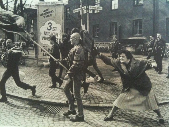 Il y a quelque chose de très simple dans la lutte antifasciste. Une sorte d'entente. Ils se tiennent tranquilles, on se tient tranquilles. Ils se montrent, on les défonce. Je ne vais pas le dire autrement, car ce serait faire le jeu de l’oubli : si effectivement, on ne lutte par contre eux en les inscrivant à la bibliothèque, on ne le fait pas sans les repousser, physiquement. Le dialogue, c’est bon pour les électeurices égaré•e•s, et encore : quand tu angoisses (théorie fumeuse déployée ici et là), tu manges trop de trucs sucrés, tu ne te retrouves pas dans le discours d’un parti fondé par un ancien SS. Personnellement, je ne parle pas avec eux, et je ne parlerai jamais avec eux. J’ai un jour été amenée à rencontrer un skinhead repenti, et j’ai eu beaucoup de mal.